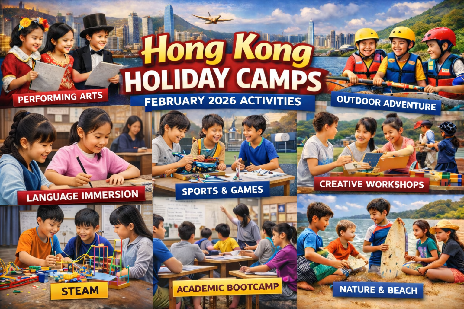- 🎭 Language & Performance Camps: English, Mandarin, public speaking, theatre